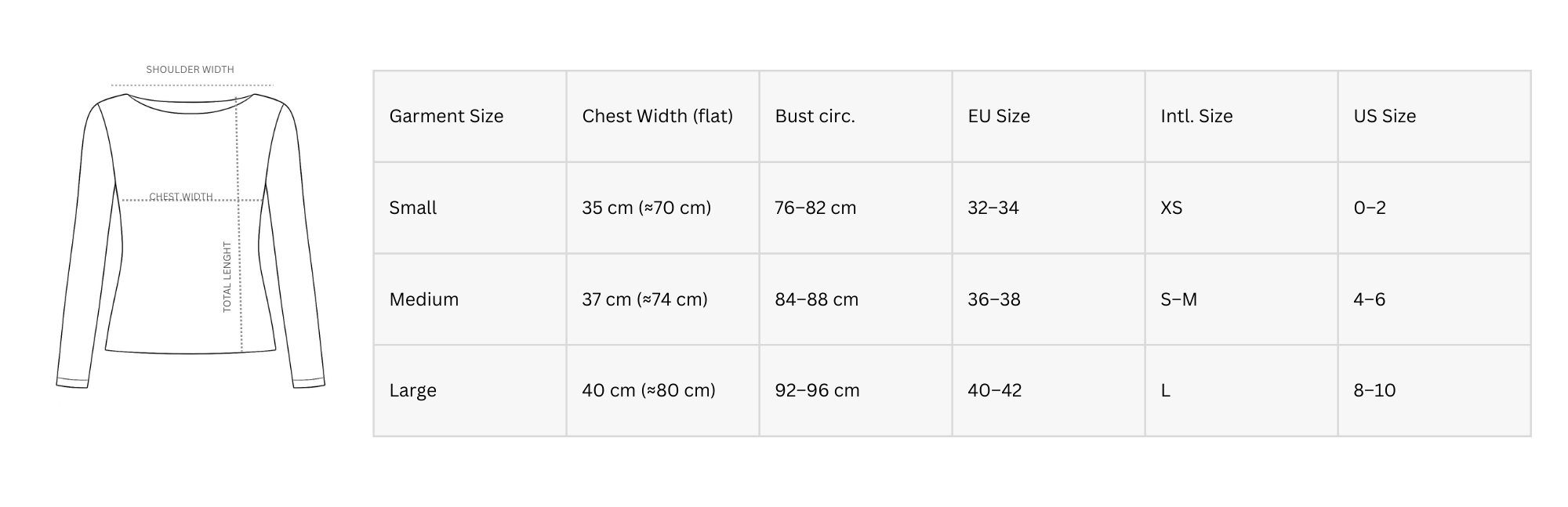 Fitted top made of breathable fabric. Boat neckline and long sleeves. Lettuce-edge finish at neckline, cuffs, and hem.